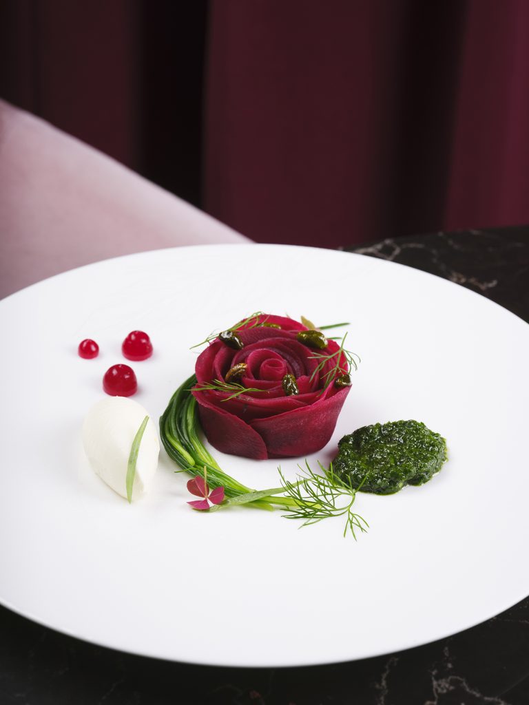 Nestled within Conrad London St. James and dressed in soft pink and red hues for the occasion, the restaurant offers an intimate backdrop for an evening to savour slowly. For two nights only, Head Chef Daniel Winser presents an indulgent six-course seasonal British menu, celebrating the very best produce with creativity and elegance.